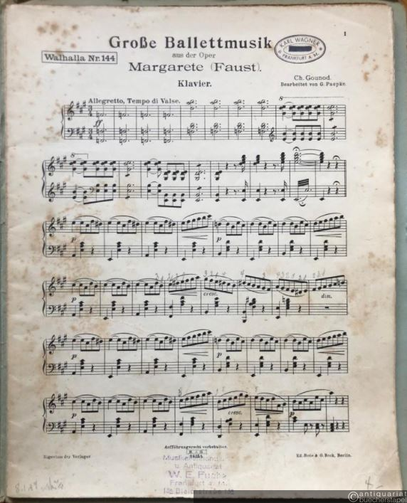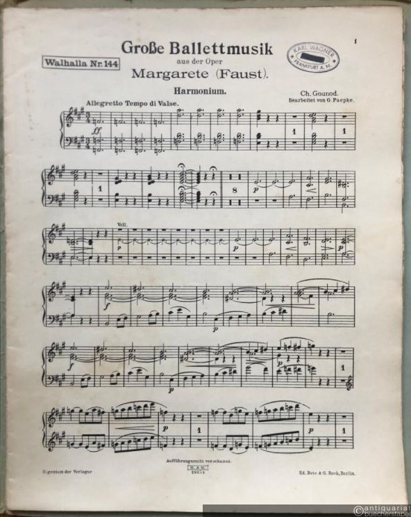 Große Ballettmusik aus der Oper: Margarete (Faust) (= Walhalla Nr. 144). Salonorchester. 13 Stimmen.