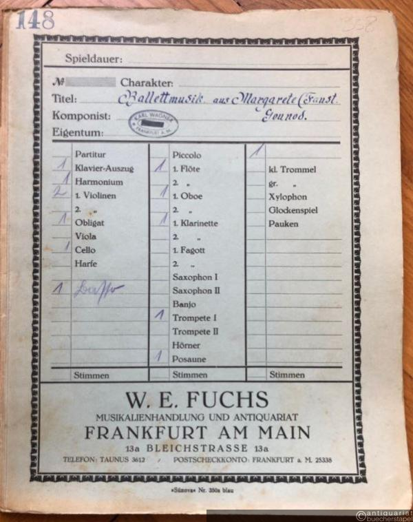 Große Ballettmusik aus der Oper: Margarete (Faust) (= Walhalla Nr. 144). Salonorchester. 13 Stimmen.