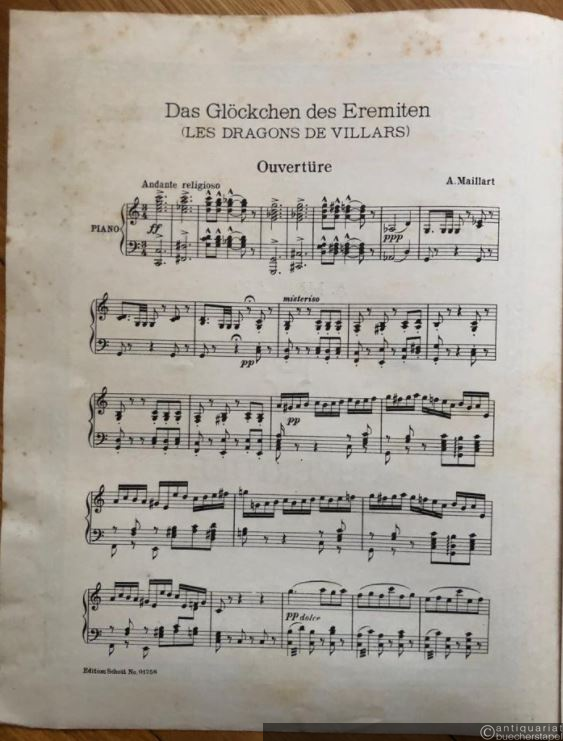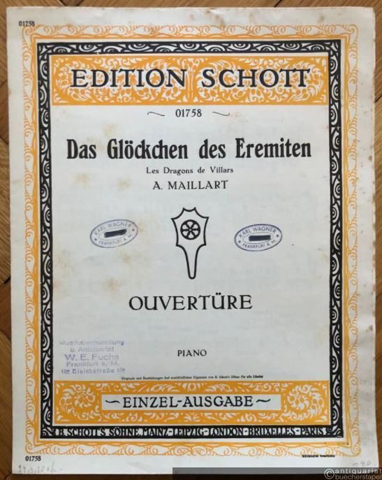 Das Glöckchen des Eremiten / Les dragons de villars. Ouverture (= Edition Schott, No. 01758). Einzel-Ausgabe. Piano.