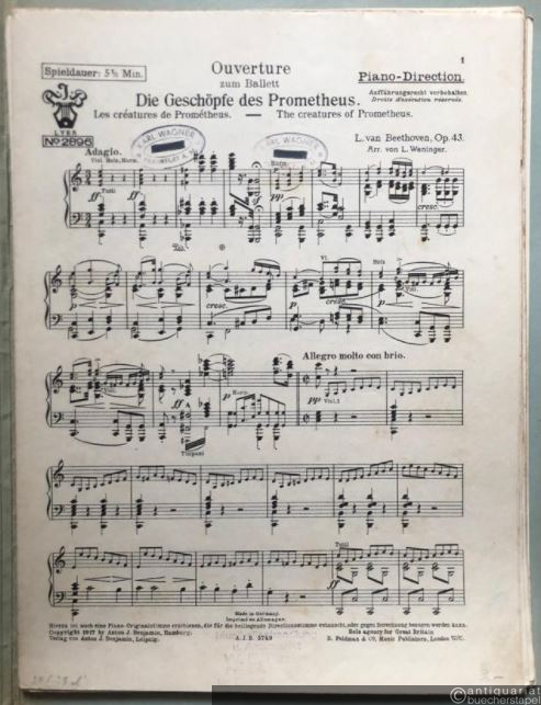 Ouverture zum Ballet: Die Geschöpfe des Prometheus, Op. 43 / Les creatures de Prometheus / The creatures of Prometheus (= Lyra No. 2896). Salonorchester. 13 Stimmen.