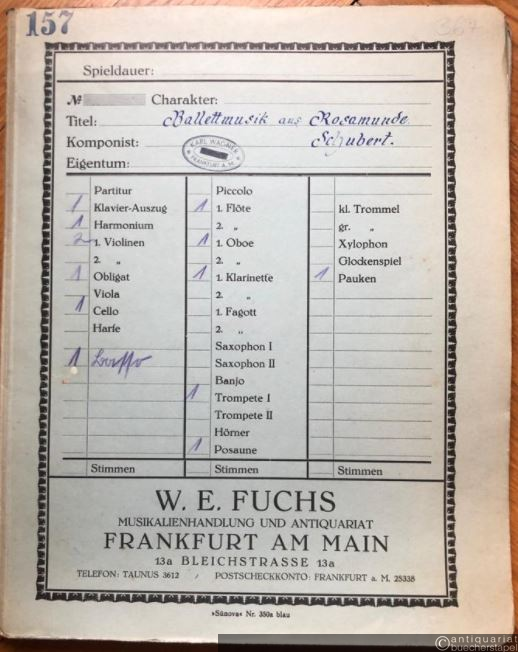 Zwischenaktmusik und Ballettmusik aus Rosamunde, Op. 26 (= Lyra No. 2691). Salonorchester. 13 Stimmen.