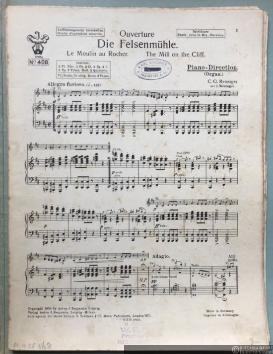 Ouverture: Die Felsenmühle / Le moulin au rocher / The mill on the cliff (= Lyra No. 408). Salonorchester. 13 Stimmen.