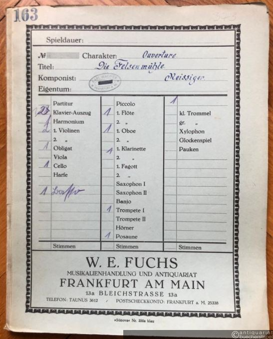 Ouverture: Die Felsenmühle / Le moulin au rocher / The mill on the cliff (= Lyra No. 408). Salonorchester. 13 Stimmen.