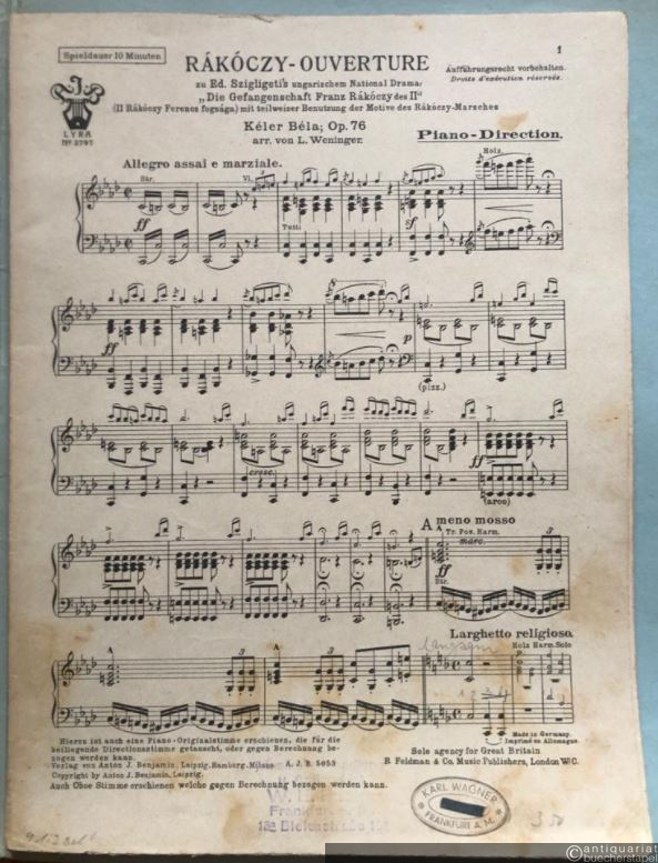Rakoczy-Ouverture, Op. 76 (= Lyra No. 2797). Salonorchester. 12 Stimmen.