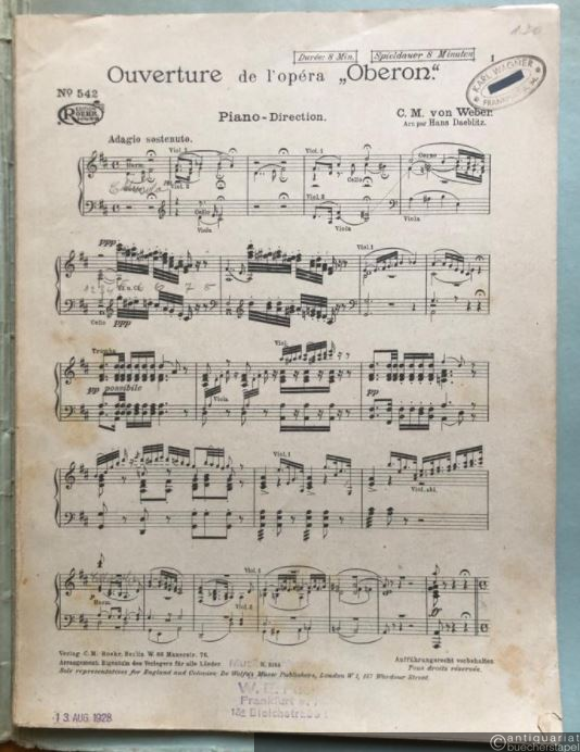 Ouverture de l'opera: Oberon (= Edition Roehr No. 542). Salonorchester. 12 Stimmen.