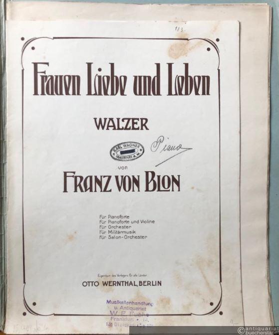 Frauen-Liebe und Leben. Walzer / Woman's love and life / Vie et amour de femme. Salonorchester. 12 Stimmen.