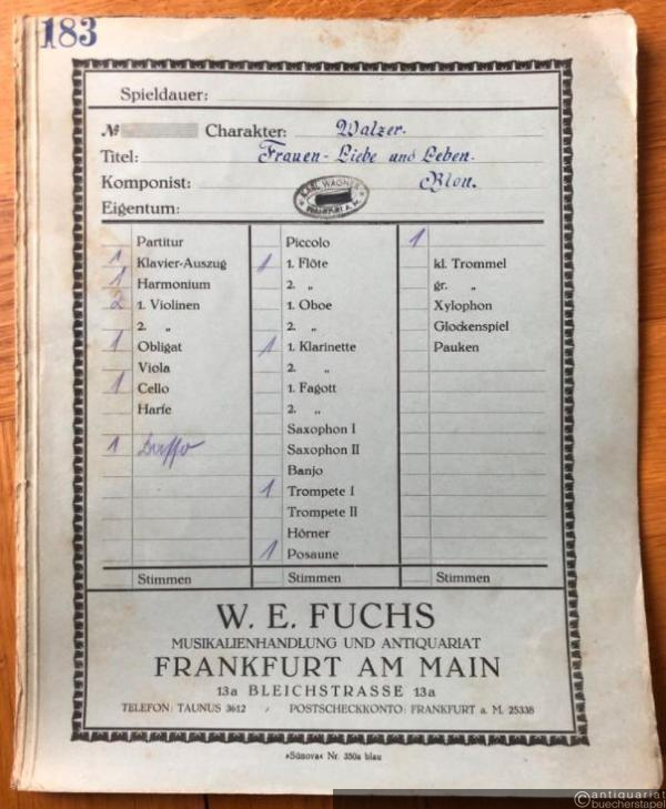Frauen-Liebe und Leben. Walzer / Woman's love and life / Vie et amour de femme. Salonorchester. 12 Stimmen.
