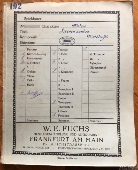 Sirenenzauber, Op. 154 (Les sirenes). Walzer (= Litolff's neue Meister-Arrangements für Salon-Orchester. 12 Stimmen, von der kleinsten Besetzung an ausführbar, No. 4). Salonorchester. 13 Stimmen.