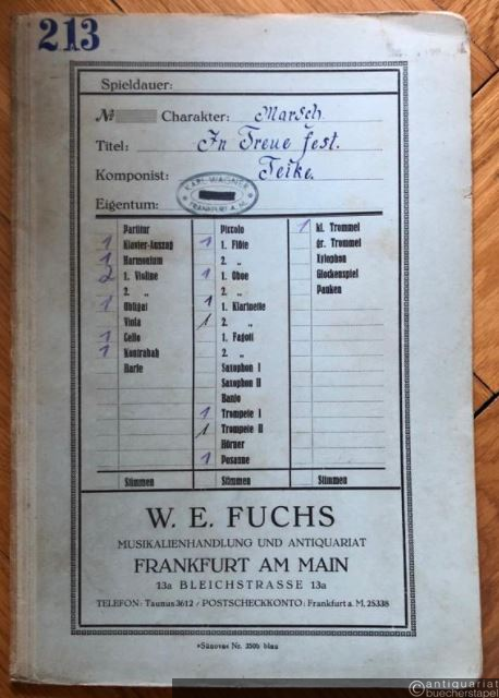 In Treue fest! Marsch. Salonorchester. 13 Stimmen.