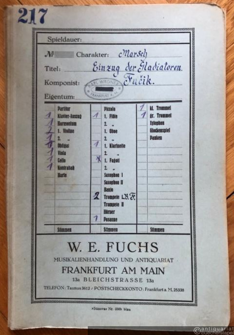Einzug der Gladiatoren, Op. 68. Triumph-Marsch / Vjezd Gladiatoru. Vitezny pochod. Salonorchester. 16 Stimmen.
