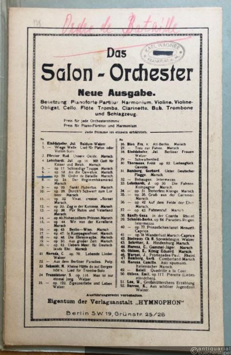 Ordre de bataille, Op. 20. Marsch (= Das Salon-Orchester. Neue Ausgabe, No. 7). 12 Stimmen.