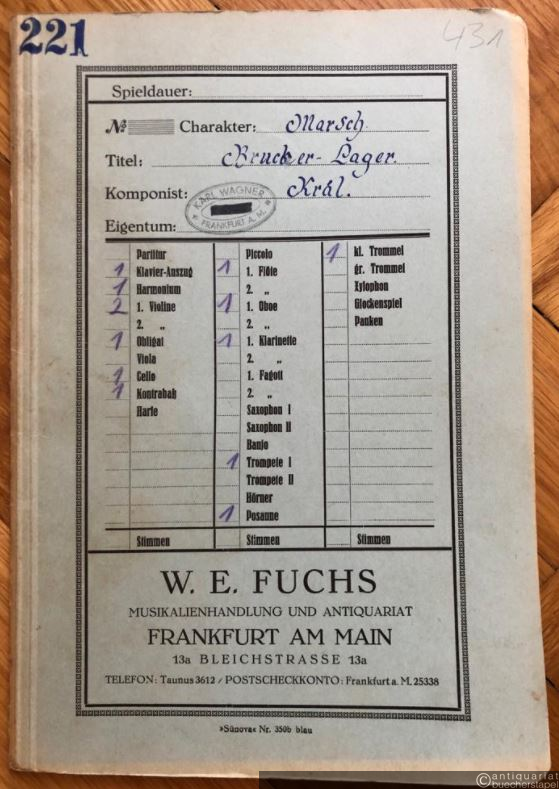 Brucker-Lager, Op. 51. Marsch (= Lyra No. 3628). Salonorchester. 13 Stimmen.