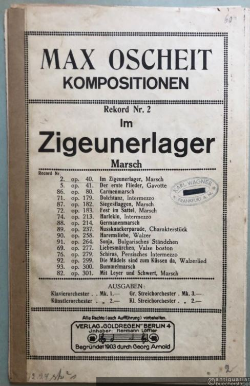Im Zigeunerlager, Op. 40. Marsch / In the gipsy's camp / Chez les bohemiens (= Rekord No. 2). Salonorchester. 12 Stimmen.