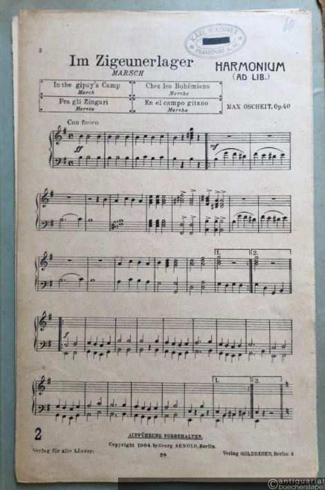 Im Zigeunerlager, Op. 40. Marsch / In the gipsy's camp / Chez les bohemiens (= Rekord No. 2). Salonorchester. 12 Stimmen.