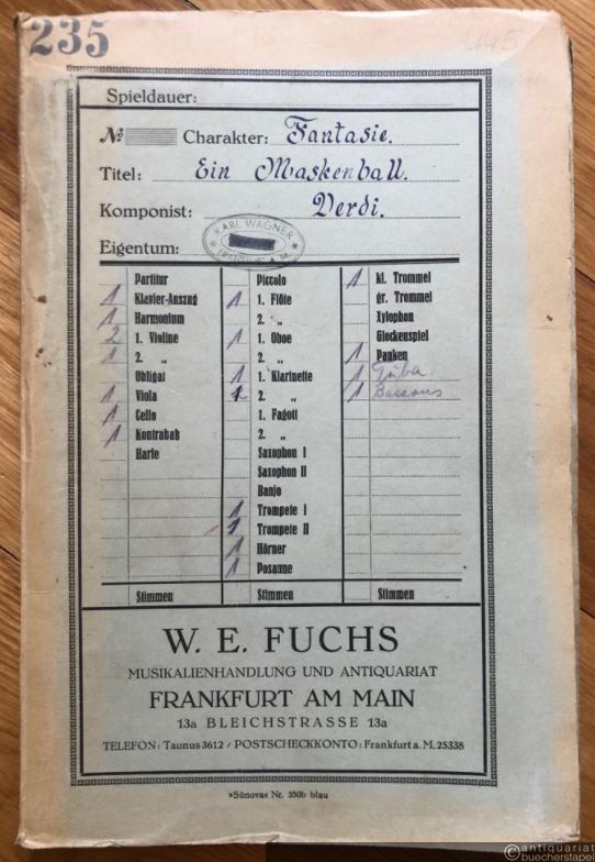 Un ballo in maschera. Opera en 3 actes de G. Verdi. Grande Fantaisie par E. Tavan. [Salon-]Orchester. 20 Stimmen.