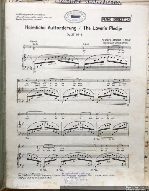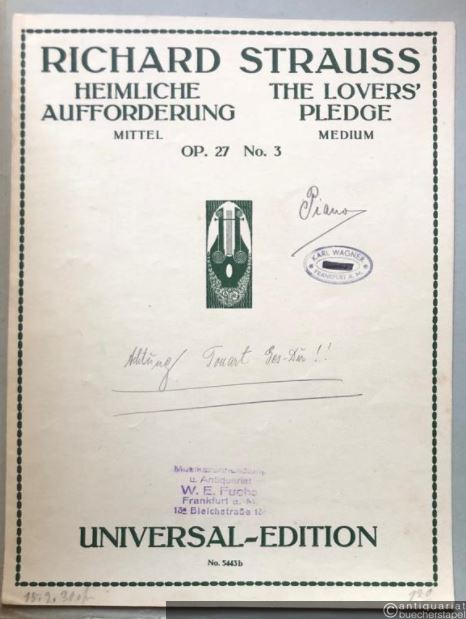 Heimliche Aufforderung, Op. 27 No. 3 / The lover's pledge. Salonorchester. 15 Stimmen.