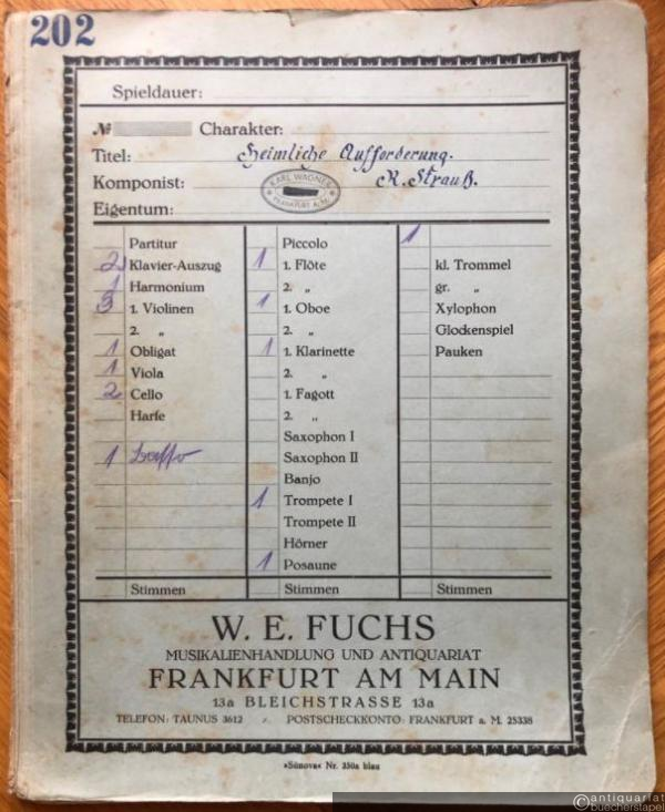 Heimliche Aufforderung, Op. 27 No. 3 / The lover's pledge. Salonorchester. 15 Stimmen.