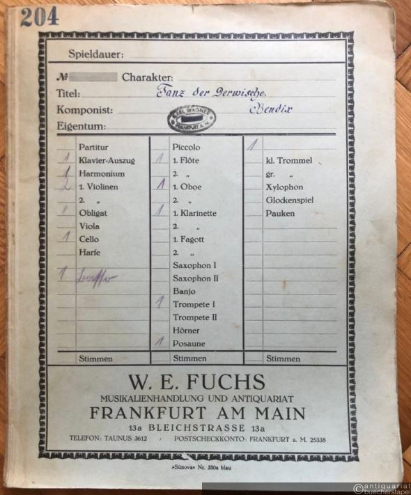 Tanz der Derwische, Op. 110. Fanatischer Tanz aus der Suite: Des Königs Maskenball (= Edition Roehr No. 328). Salonorchester. 13 Stimmen.