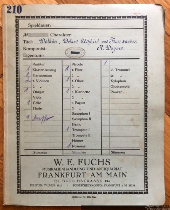 Die Walküre. Wotans Abschied und Feuerzauber (= Domesticum. Sammlung künstlerischer Ensemblemusik, No. 10). Salonorchester. 13 Stimmen.