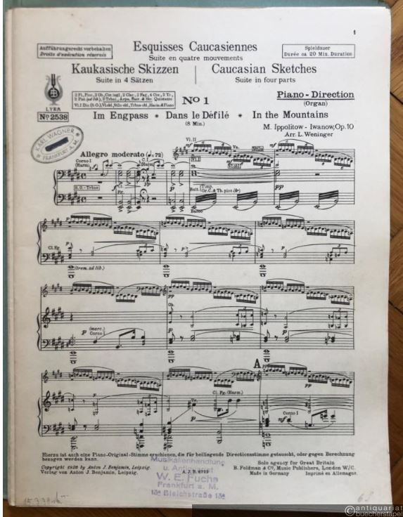 Kaukasische Skizzen, Op. 10. Suite in vier Sätzen / Esquisses Caucasiennes / Caucasian sketches (= Lyra No. 2538). Salonorchester. 13 Stimmen.