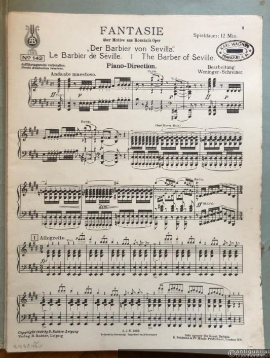 Fantasie über Motive aus Rossinis Oper: Der Barbier von Sevilla / Le barbier of Seville / The barber of Seville (= Lyra No. 142). Salonorchester. 13 Stimmen.