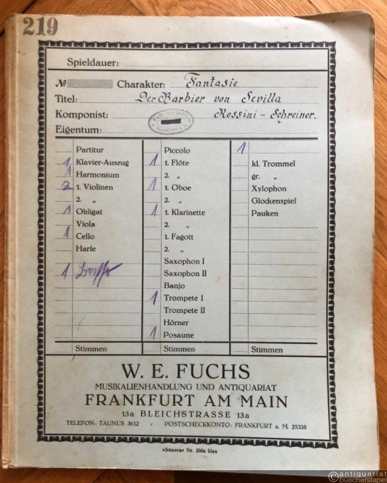 Fantasie über Motive aus Rossinis Oper: Der Barbier von Sevilla / Le barbier of Seville / The barber of Seville (= Lyra No. 142). Salonorchester. 13 Stimmen.