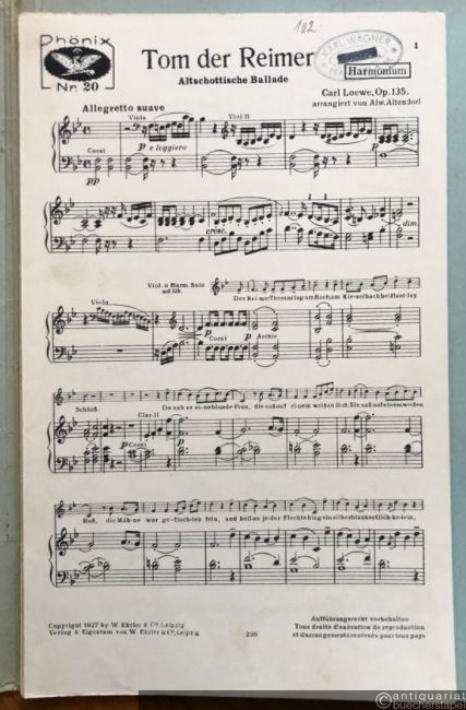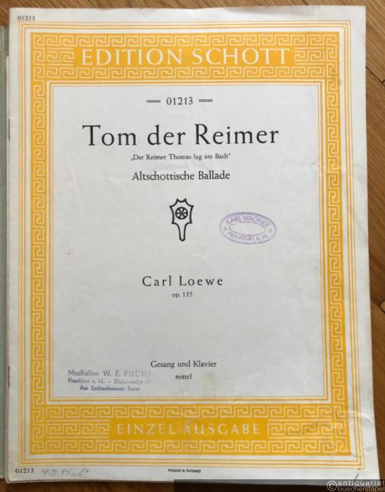 Tom der Reimer, Op. 135: "Der Reimer Thomas lag am Bach". Altschottische Ballade (= Edition Schott 01213 (pf) / Phönix Nr. 20). Salonorchester. 14 Stimmen.