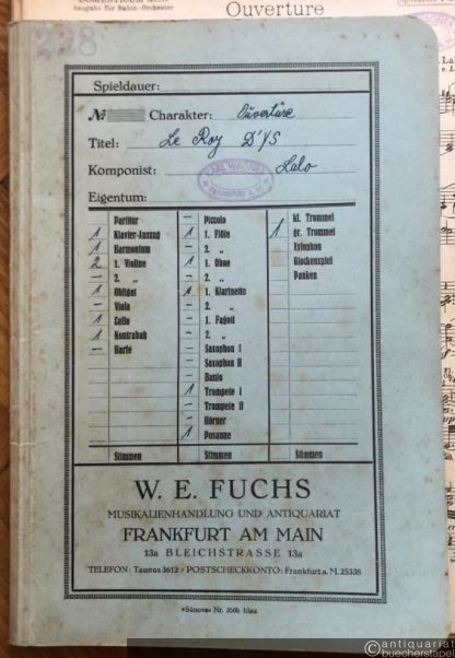 Ouverture: Le roi d'Ys (= Domesticum. Sammlung künstlerischer Ensemblemusik, No. 139). Salonorchester. 13 Stimmen.