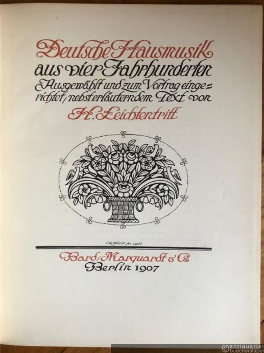 Deutsche Hausmusik aus vier Jahrhunderten (= Die Musik, hrsg. von Richard Strauss. Erster Band der Notenausgabe).