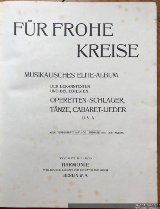 Für frohe Kreise. Musikalisches Elite-Album der bekanntesten und beliebtesten Operetten-Schlager, Tänze, Cabaret-Lieder u. v. a.