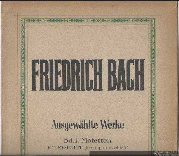 Friedrich Bach. Ausgewählte Werke. Band I: Motetten für vierstimmigen a-cappella-Chor. Nr. 1. Motette "Ich lieg und schlafe". Nr. 2. Motetto a 4 voci sopra la cantilena "Wachet auf, ruft uns die Stimme". Partituren.