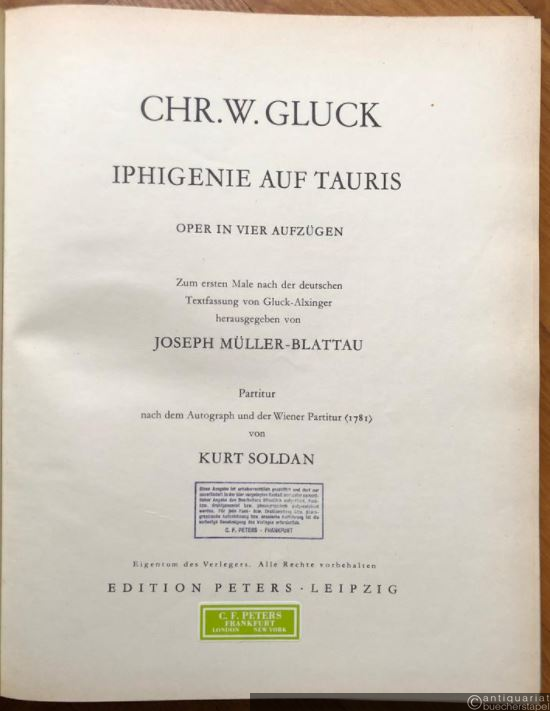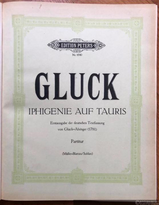 Iphigenie auf Tauris. Oper in vier Aufzügen. Erstausgabe der deutschen Textfassung von Gluck-Alxinger (1781) (= Edition Peters, Nr. 4540). Partitur.
