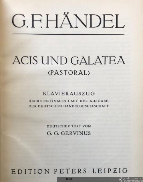 Acis und Galatea (Pastoral) (= Edition Peters, Nr. 3633). Klavierauszug.