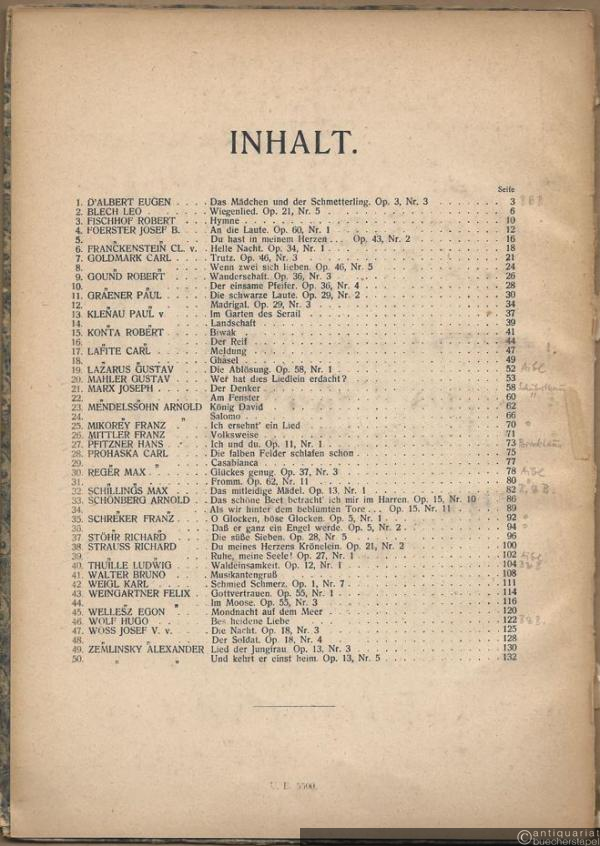 Das moderne Lied. Eine Sammlung von 50 Gesängen für mittlere Stimme.