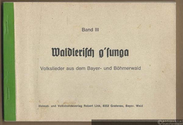 Waldlerisch g'sunga. Volkslieder aus dem Bayer- und Böhmerwald. A Haufa Liadl aus da Freud und da Liab, gega's Hoamweh und d'Langweil, für d'Schulstub'm und für d'Rockaroas. Bände I, II und III.