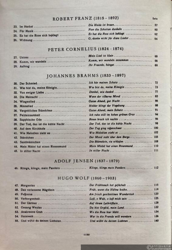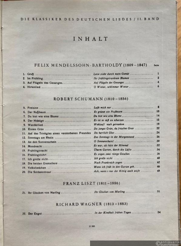 Klassiker des deutschen Liedes. Eine Auswahl von hundert Meisterliedern des 17.-19. Jahrhunderts, Band II: Von Mendelssohn bis Hugo Wolf (= Edition Peters Nr. 4575b). Ausgabe für tiefe Stimme.