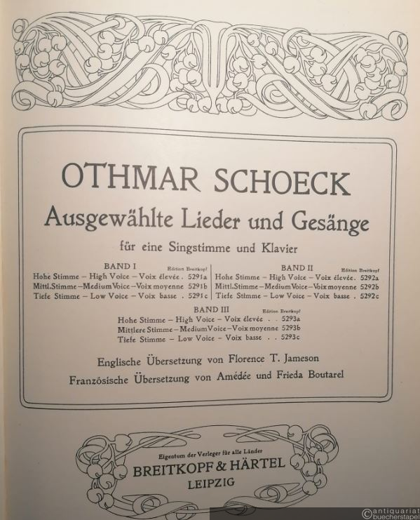 Schoeck, Othmar / Florence T. Jameson / Amedee u. Frieda Boutarel (Übers.)