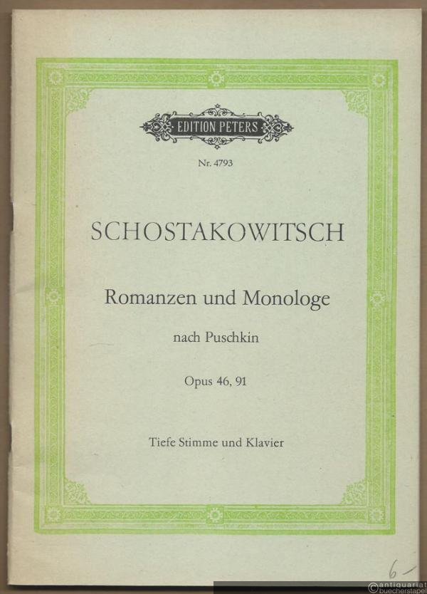 Romanzen und Monologe nach Worten von A. Puschkin, Opus 46, 91 (= Edition Peters, Nr. 4793). Für tiefe Stimme und Klavier.