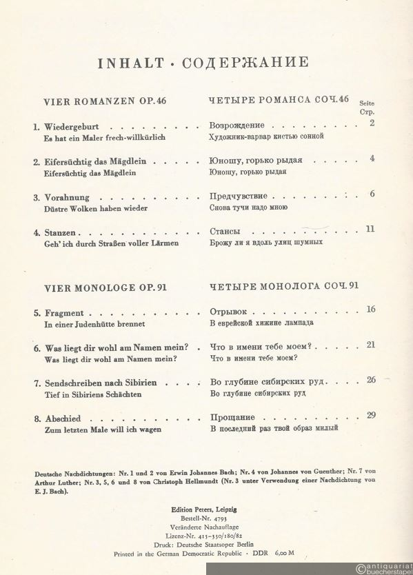 Mit deutschem und russischem Text herausgegeben von Christoph Hellmundt. VN/Pl. no. E.P. 12344. c1966.