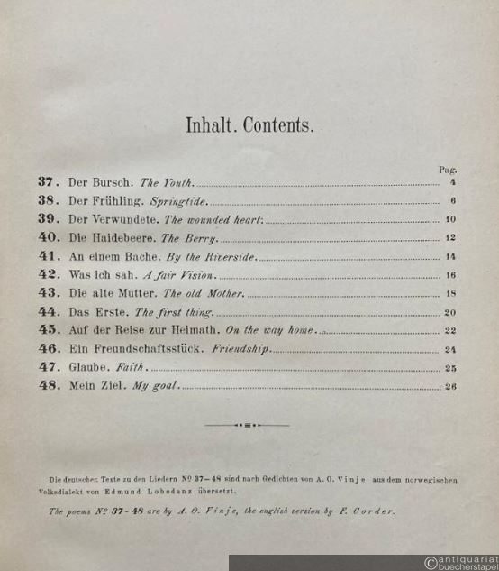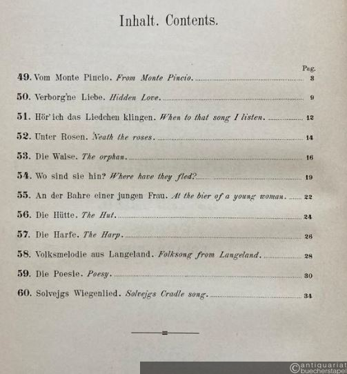 Grieg-Album. Lieder für eine Singstimme mit Klavierbegleitung [2 Hefte in 1 Band: Nrn. 37-60] / Songs (= Edition Peters). [Ausgabe für tiefe Stimme].