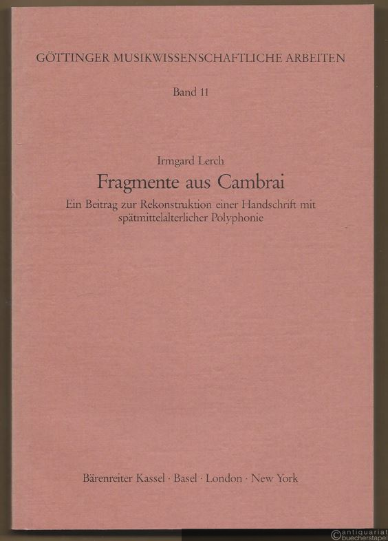 Fragmente aus Cambrai. Ein Beitrag zur Rekonstruktion einer Handschrift mit spätmittelalterlicher Polyphonie (= Göttinger musikwissenschaftliche Arbeiten, Band 11/ I u. II).