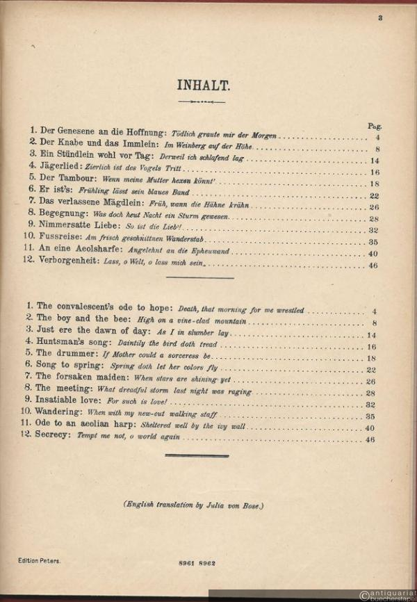 Wolf, Hugo / Eduard Mörike / Julia von Bose (Übers.)