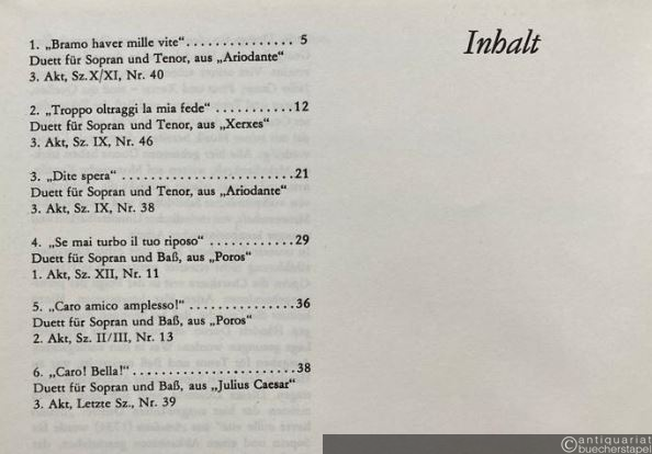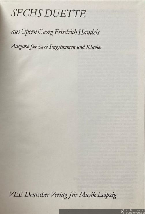 Sechs Duette aus Opern Georg Friedrich Händels (= DVfM 9071). Ausgabe für zwei Stimmen und Klavier.