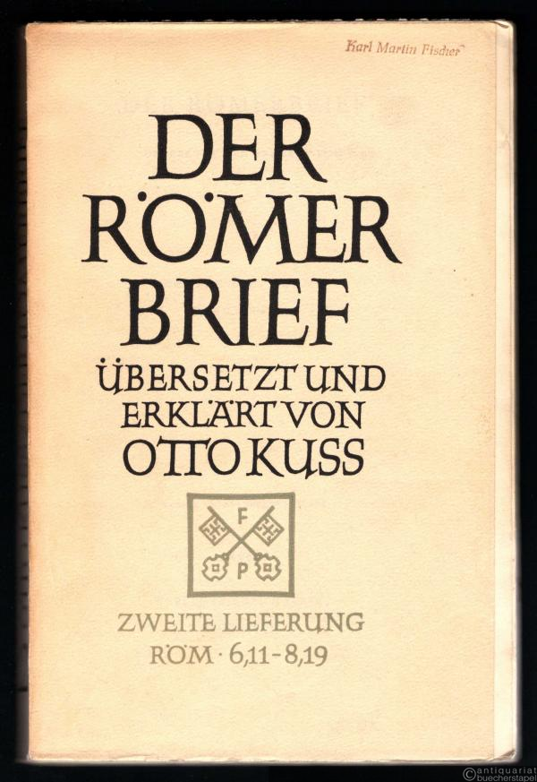 Der Römerbrief. Erste Lieferung: Röm. 1,1 - 6,11. Zweite Lieferung: Röm. 6,11 - 8,19.