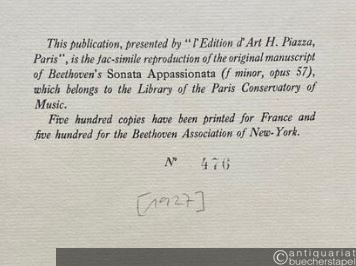 Beethoven. [Sonate appassionata (Opus 57), f-Moll]. Faksimile.