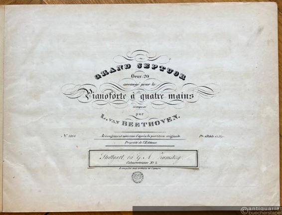 Grand Septuor Oeuv: 20 arrange pour le Pianoforte a quatre mains composee par L. van Beethoven. Arrangement nouveau d'apres la partition originale.
