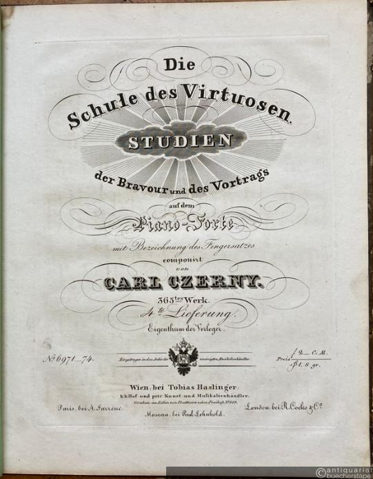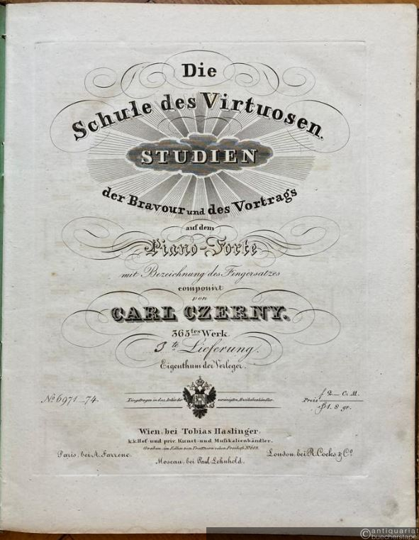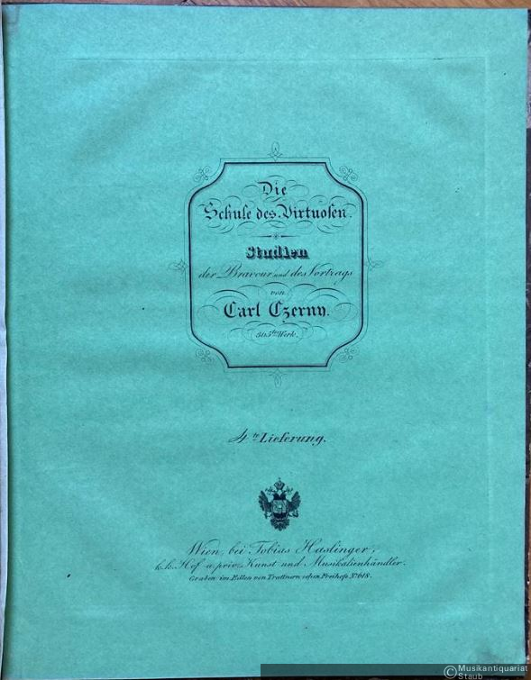 Die Schule des Virtuosen. Studien der Bravour und des Vortrags auf dem Piano-Forte mit Bezeichnung des Fingersatzes componirt von Carl Czerny. 365tes Werk. 3te und 4te Lieferung.