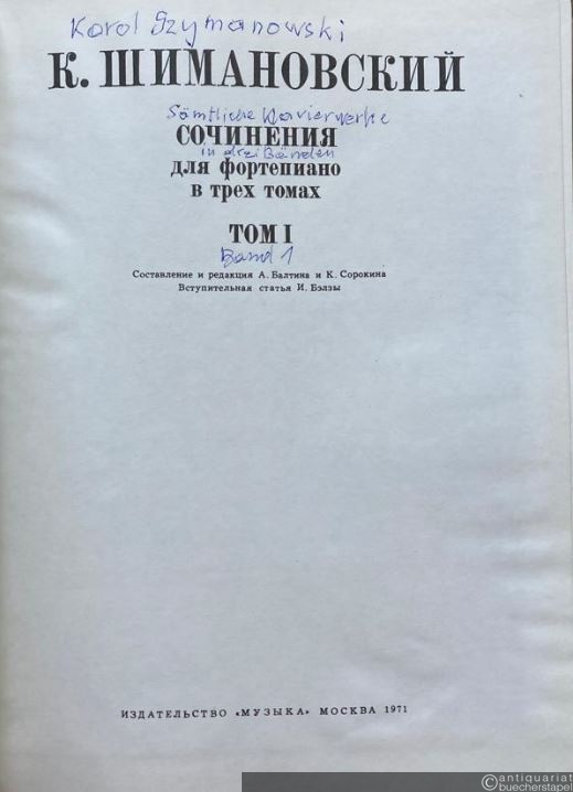 Szymanowski, Karol / A. Baltin u. K. Sorokin (Zusstlg. u. Red.) / Igor' Belza (Vorw.)