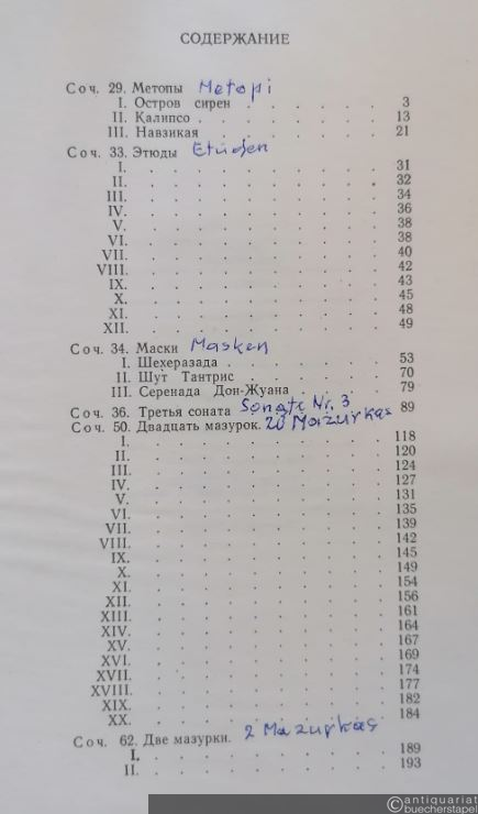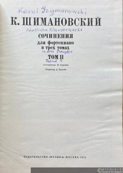 Sotschinenija dlja fortepiano v trech tomach, tom 1 i 2 [Werke für Klavier in drei Bänden, hier die Bände 1 u. 2].