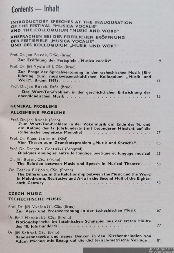 Colloquium Music and Word / Musik und Wort Brno 1969 (= Musikwissenschaftliche Kolloquien der Internationalen Musikfestspiele, Band 4).